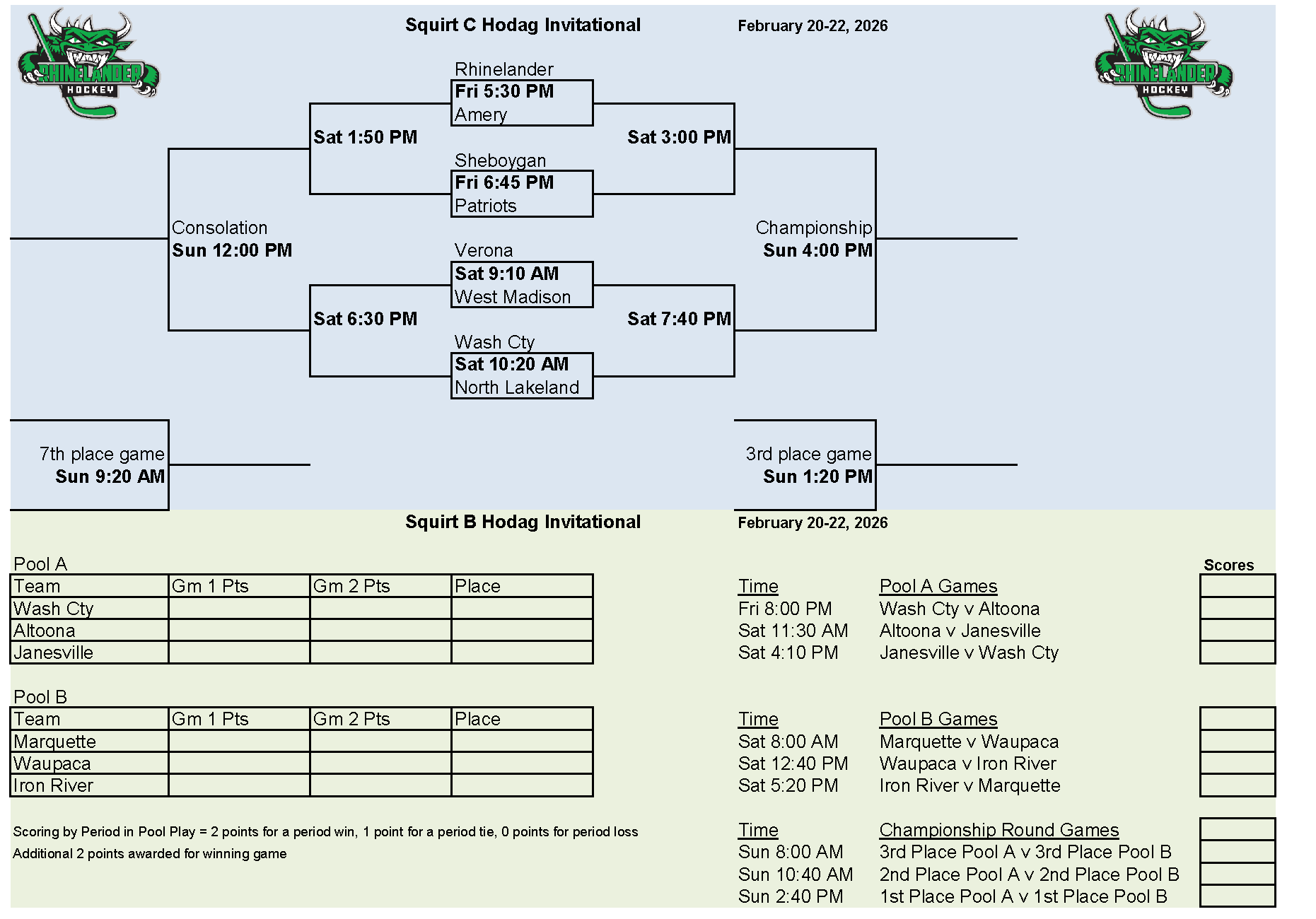 Signup for the Squirt B and Squirt C Hodag Hockey Invitational February 20-February 22, 2026.